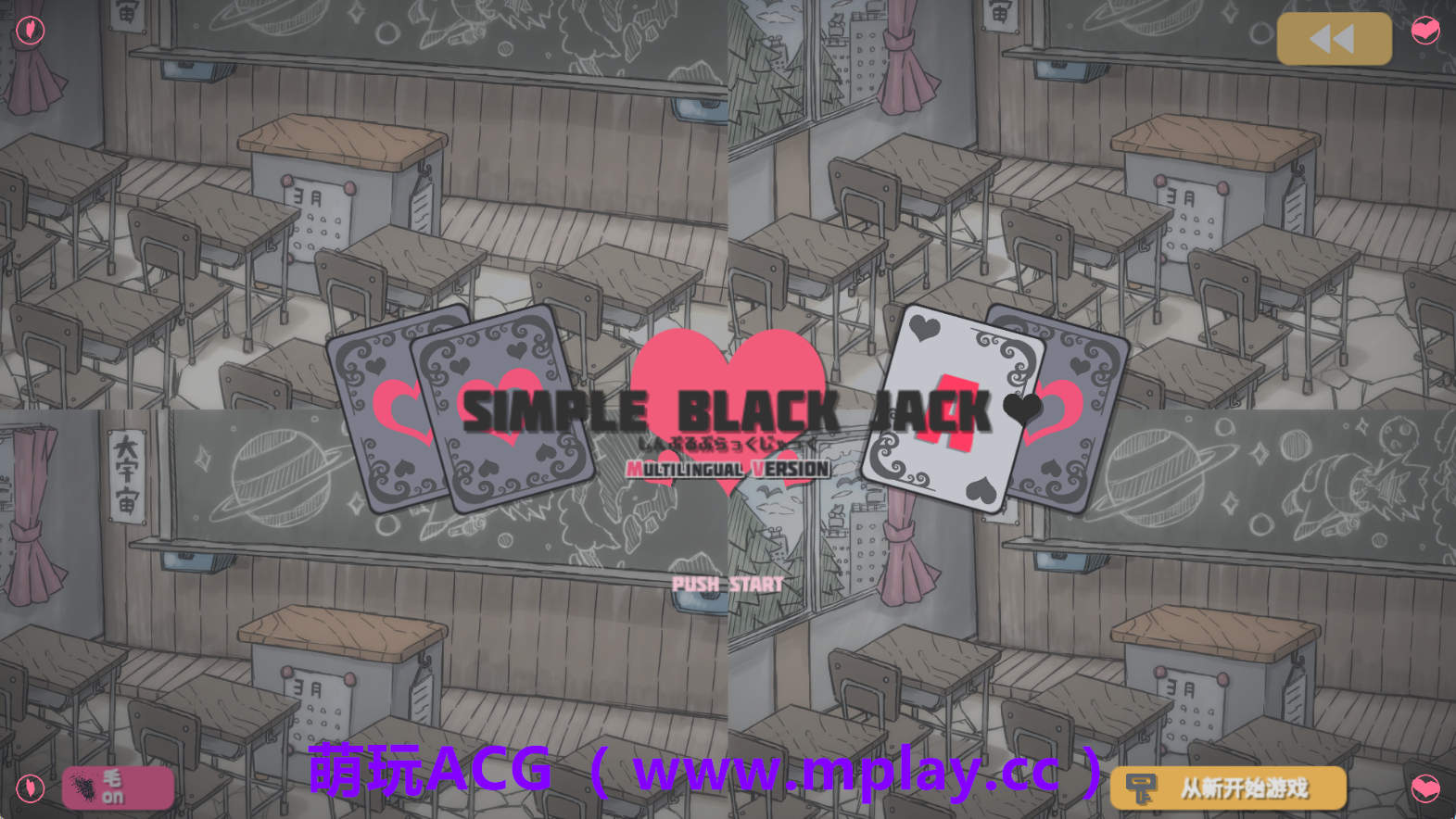 现在的女人都这么主动了吗]总而言之,本想告白结束单身狗生活,但是却卷进了世界毁灭的奇妙事件,还白得了一个媳妇?不过,为了防止世界毁灭,我需要……[使用21点来击败这些女人?!]总而言之,这是一款和女孩字们一起玩21点的神奇游戏,只要胜利,便有香艳至极的奇妙将奖励!只要赢得一次,便可以将这些勾人的女人们就地**!还有额外隐藏内容、还有附带攻略等情报的支持网站等…☆互动丰富,玩法也是相当新颖虽然是21点玩法,但是各个关卡都有不同的胜利条件!游戏方法只要赢一次就能进入下一阶段。不进入下一阶段也可确保得到1点生命值。游戏为自动保存进度、结束游戏后下次,再玩会从最后结束地方开始。 省略剧情按钮:右上角体毛显示按钮:左下角、可选择是否显示体毛。21点的hit、stand与胜利时获得的爱心等可使用左右键进行操作。这是一个简单的游戏,她会告诉你“这个”和“那个”当你在黑杰克游戏中赢了她。