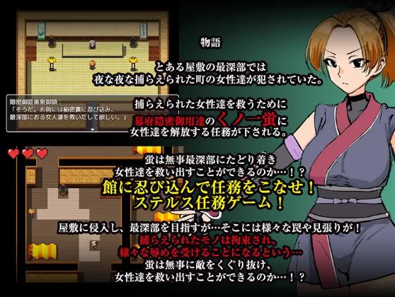 为了拯救这些被囚禁的妇女,幕府秘密情报机构雇佣的女忍者萤受命前往解救她们。